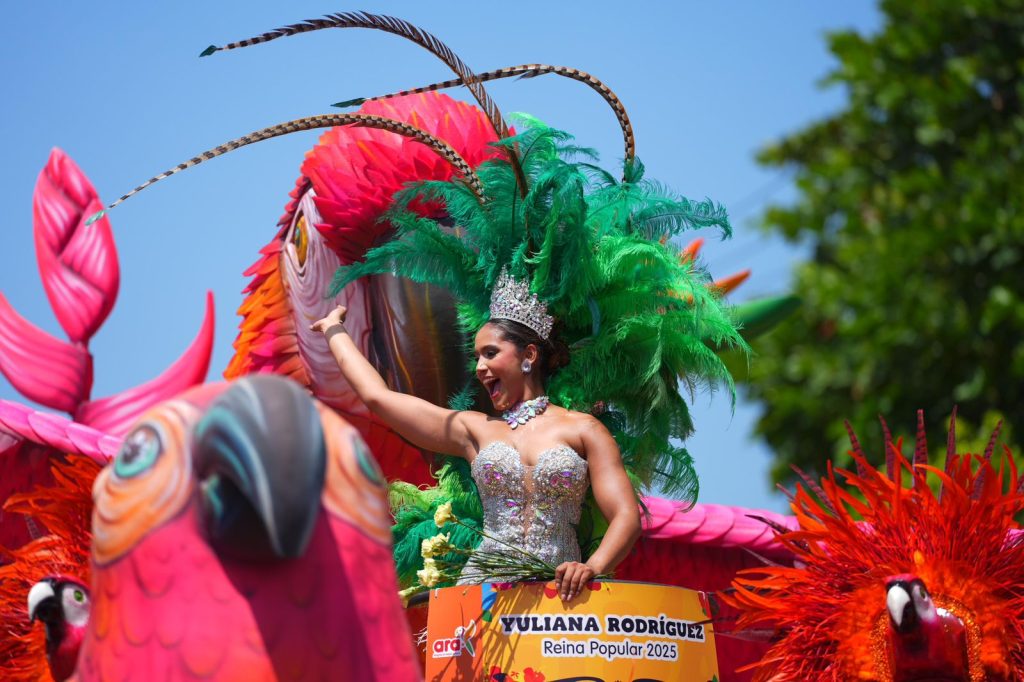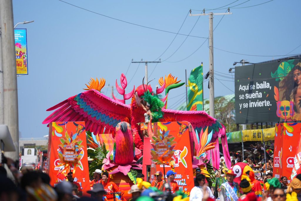 Finalmente, el tercer lugar lo obtuvo ‘Amanecer Caribe’, diseñada por Miller Cabarcas y elaborada por Rubiel Badillo, con el patrocinio de ARA. La carroza celebró la biodiversidad de la región con una majestuosa guacamaya entre flores tropicales y lianas, evocando el amanecer en la costa y exaltando la armonía entre naturaleza y cultura.