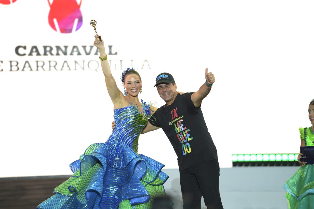 “Barranquilla está feliz porque has hecho un Carnaval espectacular, te has metido a los barrios, te forjaste en Fuerza Negra, le has dado mucha importancia a los grupos folclóricos”, mencionó el mandatario, quien le entregó a la reina el poder simbólico para dirigir la ciudad hasta el Miércoles de Ceniza.