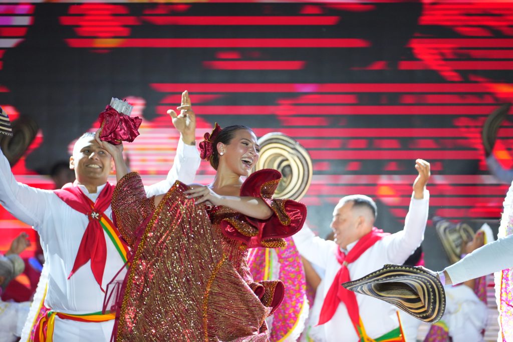 La narrativa celebró la riqueza musical y dancística del Caribe afroantillano, y continuó con una sentida exaltación a San Basilio de Palenque como cuna de resistencia y libertad en voces de grandes cantadoras del Caribe como Lina Babilonia y La Carmen, para llegar al Carnaval de Barranquilla, teniendo como insignias el mapalé, son de negros y la danza del congo, con el Congo Grande de Barranquilla, danza dirigida por el Rey Momo, director de esta danza ancestral de 150 años, quien acompañó este momento junto a su nieto Isaac y el Rey Momo del Carnaval de los Niños,Joshua Ortiz, representando el traspaso generacional del turbante y con él, los saberes y la cultura.